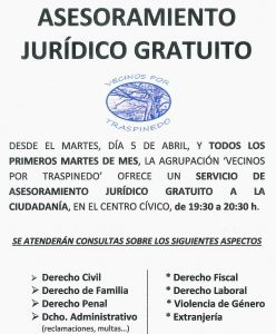 Servicio de Asesoramiento Jurídico Gratuito a la ciudadanía de Traspinedo mayo 2, 2017 | No hay comentarios | Reclamaciones e iniciativas Read More »