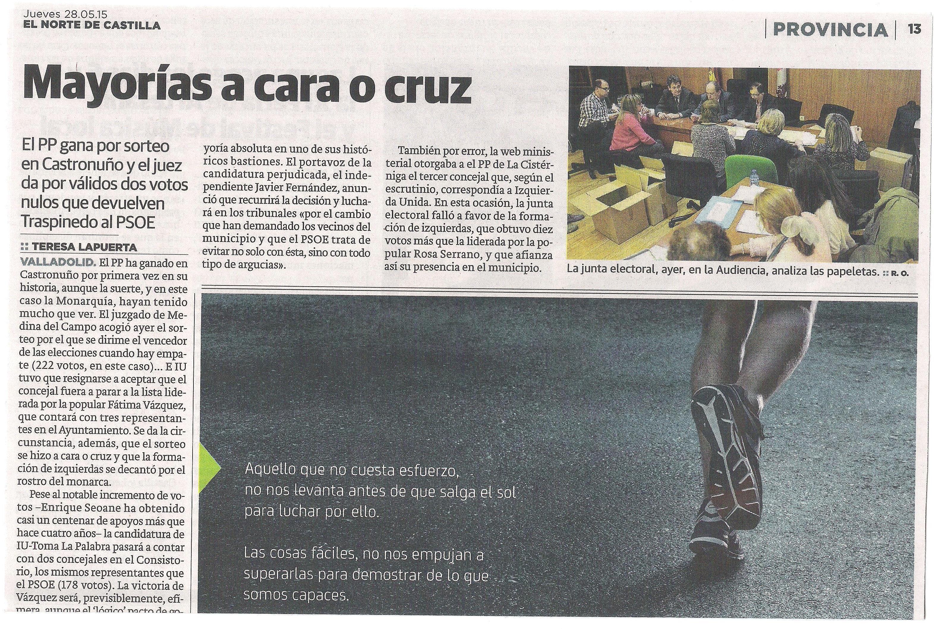 Mayorías a cara o cruz (El Norte de Castilla)