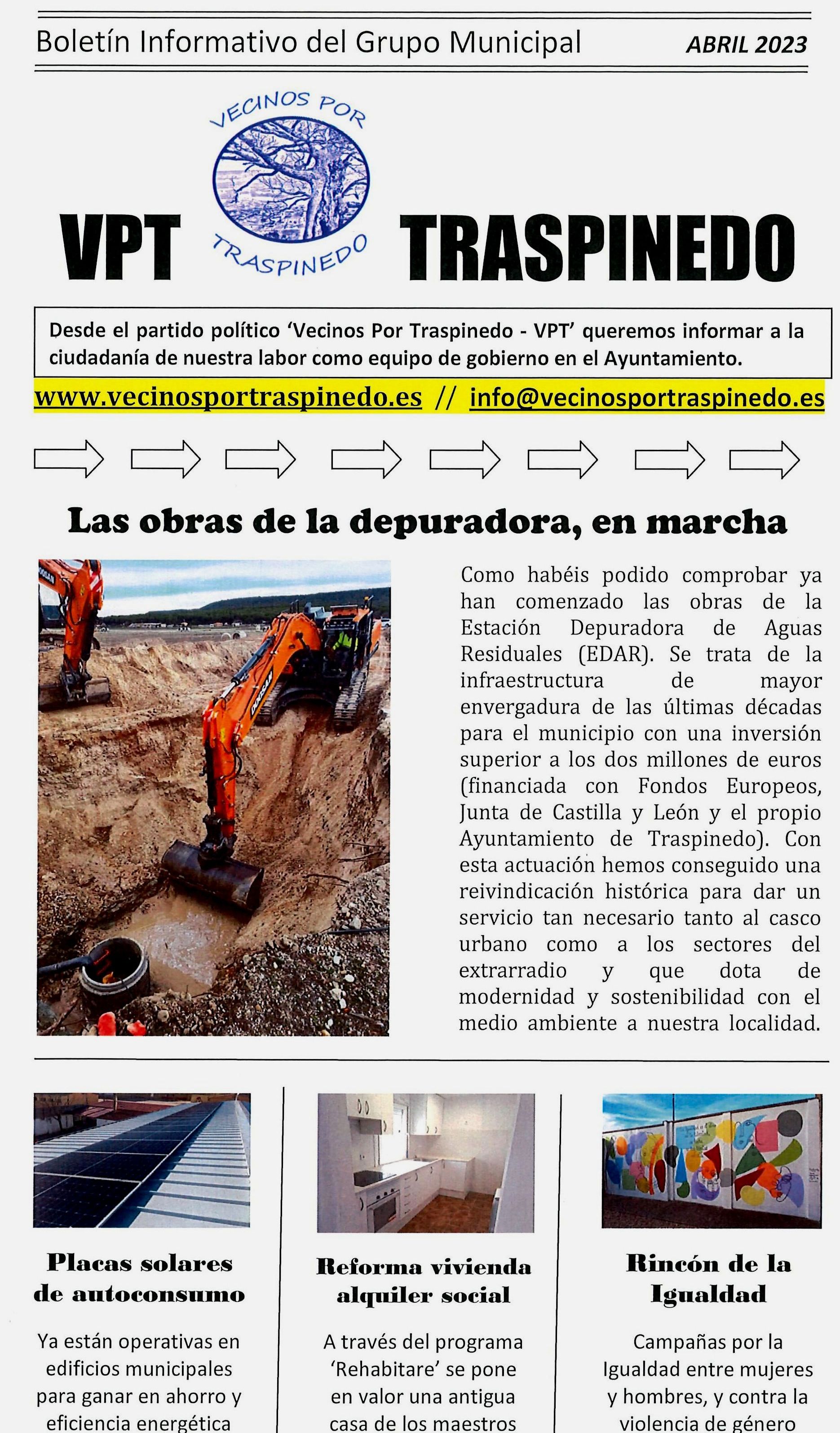 Muchas gracias Traspinedo por el fuerte apoyo recibido en las urnas este 28M y que avalan ampliamente tanto la gestión municipal llevada a cabo estos cuatro años por Vecinos Por Traspinedo (VPT), como el programa electoral presentado y el gran equipo de personas que conforman nuestra candidatura. Seguiremos con nuestra línea de RESPONSABILIDAD, TRABAJO, MÁXIMA […]